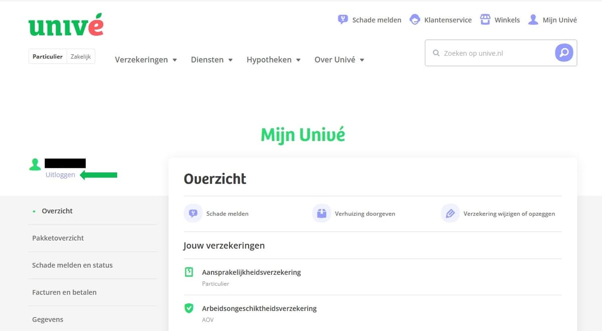 Je kunt uitloggen bij Mijn Univé door links in beeld op 'Uitloggen' te klikken. Ook wanneer je de browser sluit, log je automatisch uit.
