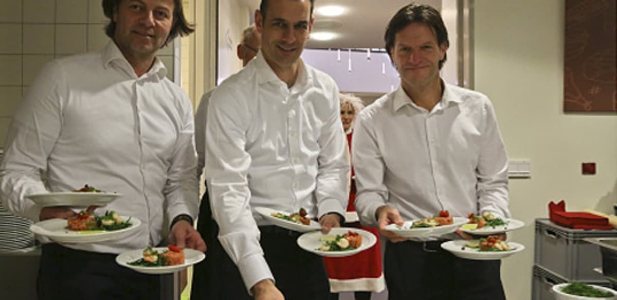 De managers stonden ’s middags al in de keuken om het diner voor te bereiden. Dit jaar wederom onder begeleiding van cateraar Van Regteren en Buro Magnificent. Met hulp van deze professionals lukte het om een prachtig diner te serveren.