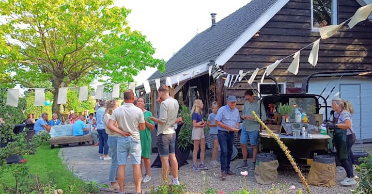 Samen met hun kinderen, kleinkinderen, vrienden en buren genoten Henk en Rosa van de lekkerste flammkuchen en poffertjes. Met Voordeel van Samen hadden ze de TukTuk foodtruck gewonnen. "We hebben een superleuke avond gehad. Er waren zelfs vrienden bij, die de dag ervoor uit Kiev waren aangekomen. Voor hen was het helemaal heerlijk om even onbezorgd in onze tuin te kunnen zijn. Geen alarm, geen dreiging. Hoe fijn is dat! We hebben dankzij jullie, heerlijk kunnen delen. Heel fijn!"