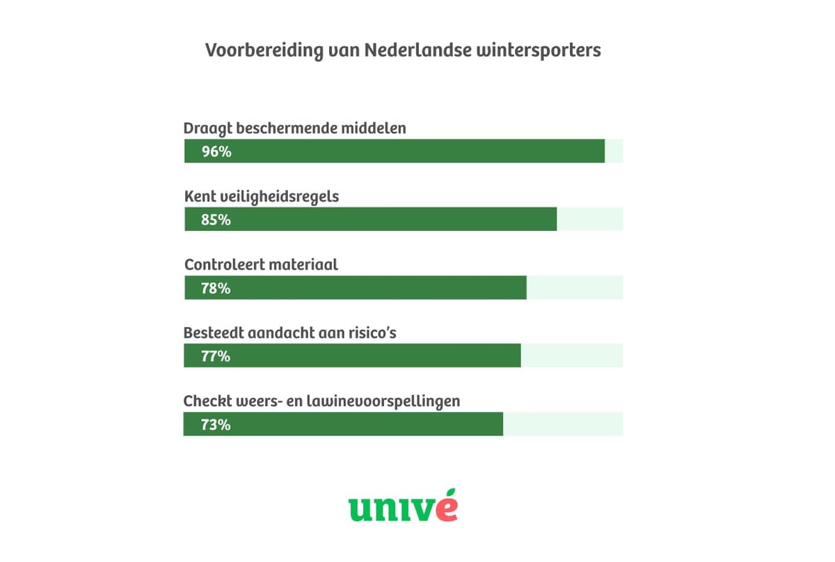 Wintersport is voor veel Nederlanders een jaarlijkse traditie. Skiën en snowboarden staan voor ontspanning, sportiviteit en plezier in de bergen. Tegelijkertijd is het een omgeving waarin veiligheid een grote rol speelt. Uit onderzoek van Panelwizard, uitgevoerd in opdracht van Univé onder 1.042 Nederlandse wintersporters, blijkt dat Nederlanders zich over het algemeen goed voorbereiden op hun wintersportvakantie.